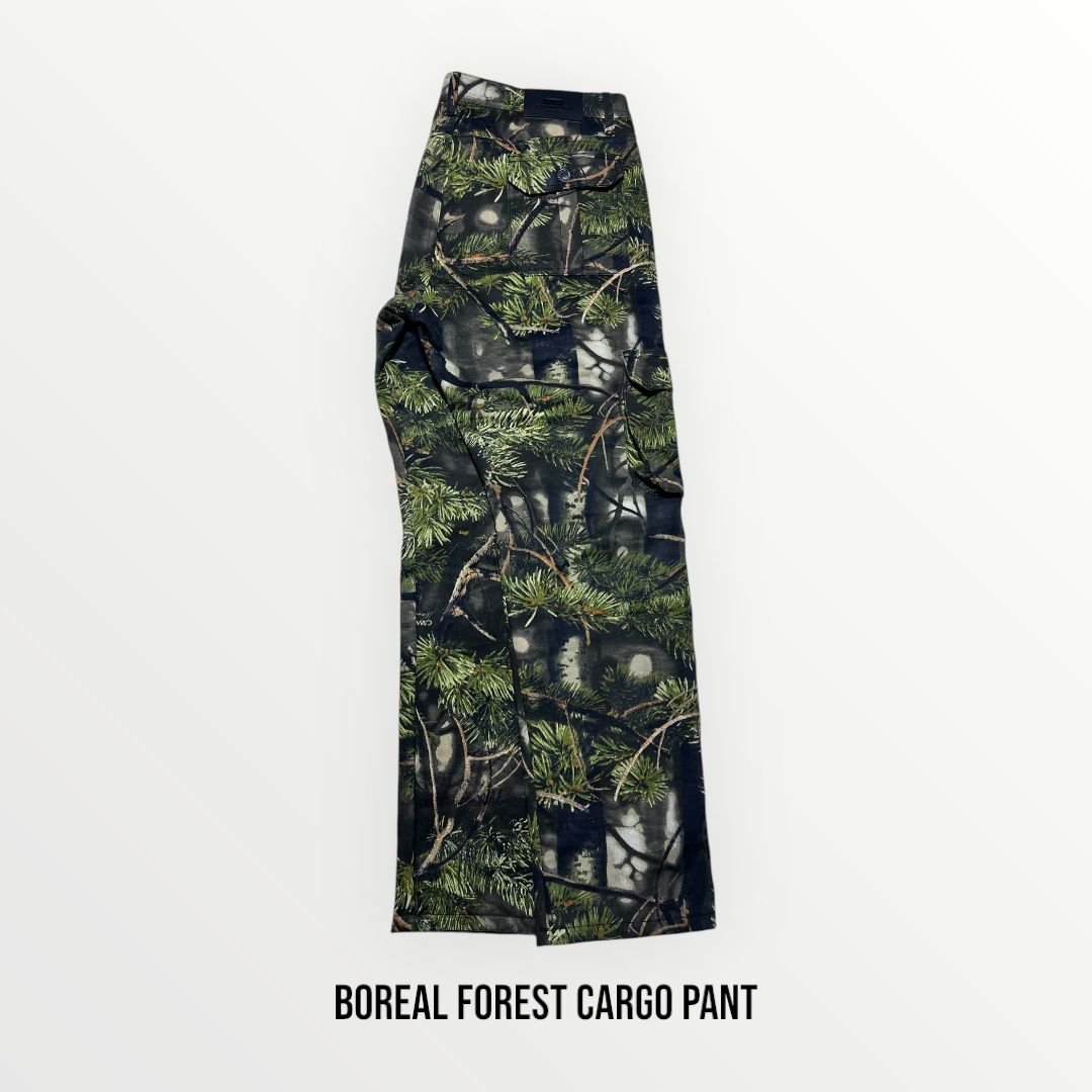 Descubre la fusión perfecta entre naturaleza salvaje y funcionalidad moderna con nuestro Boreal Forest Cargo Pant. Diseñado para verdaderos aventureros, este pantalón cargo destaca por su impresionante patrón de camuflaje inspirado en los bosques boreales, que no solo te conecta visualmente con la naturaleza, sino que además ofrece un estilo auténtico y atrevido en cualquier entorno.